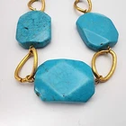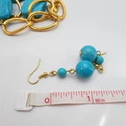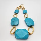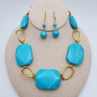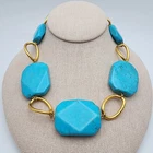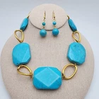 Bold Faux Turquoise Real Stone Gold Chain Link Chunky Choker Necklace Dangle Bead Earrings Stones Are Cold To Touch. Howlite? Statement Piece. Great For Layering Or Wearing Alone.