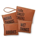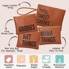Durable Material, Easy to Wipe-clean: This diaper bag organizer is made of durable, wipe-clean vegan leather and waterproof nylon. Sturdy straps, nice color, soft and comfortable. Hand wash only. The spills could be wiped off easily with wet towel Fits in most bags: Dimensions of the biggest one:10.8(L)*8.5(W), Same size of other pouchs: 9(L) *7.5(W). Weight: 0.85LB. 4 piece diaper bag organizing pouches set with 2 different sizes. The biggest one able to fit about 4 to 6 cloth diapers Sturdy Wristlet, Readable Labels: Stitched sturdy vegan leather wristlet, long strap for baby diaper change. This diaper clutch has embossed leather labels that keep you organized and accentuate the whole look, make locating things a matter of seconds Easy Organization, Practical: This diaper bag insert is a combination of aesthetics and functionality, embossed artwork, back brand logo. Separate storage pockets, keeping your baby essentials and mom things well organized in your bag or luggage Diaper Bag Accessories: Not only as a diaper bag organization for baby care, also as the packing travel organizer, luggage packing cube organizers even your babies grow up. Ideal for every type of outing, from running, shopping, hiking to long-distance trips Product Description Keep Organized and Tidy with Mominside Diaper Bag Organizing Pouches for Babies & Toddles 4 piece baby bag organizer pouches set with 2 different sizes, fit most of size Baby diaper bags Durable waterproof Material --Soft and comfortable, brown and dark brown color. Easy to Wipe-clean--Wipeable, hand wash only, the spills could be wiped off easily with wet towel. Readable Labels --quickly find what you need with unique labels on the diaper bag organizer,dads even can do. Long stitched Leather Wristlet --Longer than other diaper clutch, s turdy enough for using a long time. Durable and Versatile Design: Sturdy long wrist strap, Easy to take out and change diapers in a breeze. Waterproof Material, wipeable outer layer, easy to clean. The smooth golden zippers can open the pouches easily. Unique embossed vegan leather labels help you find what you need quickly and keep the color more longer. Minimalist, stylish design: Mominside diaper bag insert is a combination of aesthetics and functionality, Minimalist design, embossed label, back brand logo. Ultra-spacious, Compact and Lightweight: Lots of space-efficient pockets, you can separate and organize baby’s essentials and mama stuff. You don’t need to search frantically in the bottom of your diaper bag, making it easy to organized and grabbing what you exactly want from your diaper bag. Material: -- Outer: durable, wipe-clean vegan leather -- Inner: waterproof nylon Dimensions: -- hello, Sweet Cheeks: 10.8(L)*8.5(W). -- Goodies, Wet Things, Mama Things (Same size) : 9(L) * 7.5(W). -- Wrist Strap: 18.2 inches. -- Weight: 0.85LB. The Perfect Diaper Bag Organization Choice for Mom-On the Go It can be used in any occasions, such as travel and work, every type of outing, from running, shopping, hiking to long-distance trips. It's the perfect choice for baby registry search, baby gift, Mother's Day gift, Women's Day gift, Christmas day and Thanksgiving. Not only as a diaper bag organization for baby care, also as the packing travel organizer, luggage packing organizers even your babies grow up. hello,SWEET CHEEKS This is suitable for carrying your baby stuff and plenty of space for baby diapers, wipe and lotion, changing the diaper everywhere you want with diaper pouch. MAMA THINGS It’s the right size for your phone, cosmetics and sunglasses to keep all your things in for quick and easy access. GOODIES The diaper bag pouches perfect for holding your little one snacks and food to relive hunger when you are going out. WET THINGS To pack extra washcloth and swimming suits in and store dirty/wet clothes, towel to keep diaper bag backpack neat and sanitary.