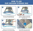 Bolsas de Almacenamiento al Vacio Para Maletas de Viaje Guardar Ropa Vacio NUEVO Multiusos: nuestras bolsas de almacenamiento al vacío son esenciales tanto para ahorrar espacio en el hogar como para organizar los viajes. Funcionan como bolsas de almacenamiento para ropa y bolsas de compresión para viajes. Protección confiable: con el diseño de válvula turbo de triple sellado y sello de doble cremallera, nuestras bolsas de vacío extraen el aire en el proceso de succión. Se puede usar repetidamente. Bomba manual incluida para un uso fácil: funciona con una aspiradora estándar. Simplemente coloque los artículos en nuestra bolsa de almacenamiento al vacío, selle la cremallera, succione el aire y cierre la tapa. También puede usar la bomba incluida para almacenar al vacío fácilmente sus artículos. 8 JUMBO INCLUYE: 8 Jumbo: bolsas de almacenamiento al vacío de 39,35" X 27,5" (100 cm X 70 cm).