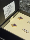 Bomb Party Simply Studs Classic Edition "Sunset Boulevard" RBP 9066. Amethyst with Gold Plating, Black Onyx with Hematite Plating and Diamond Cubic Zirconia with Rhodium Plating. New, never worn/tried on. In original packaging. Ships USPS Ground Advantage.