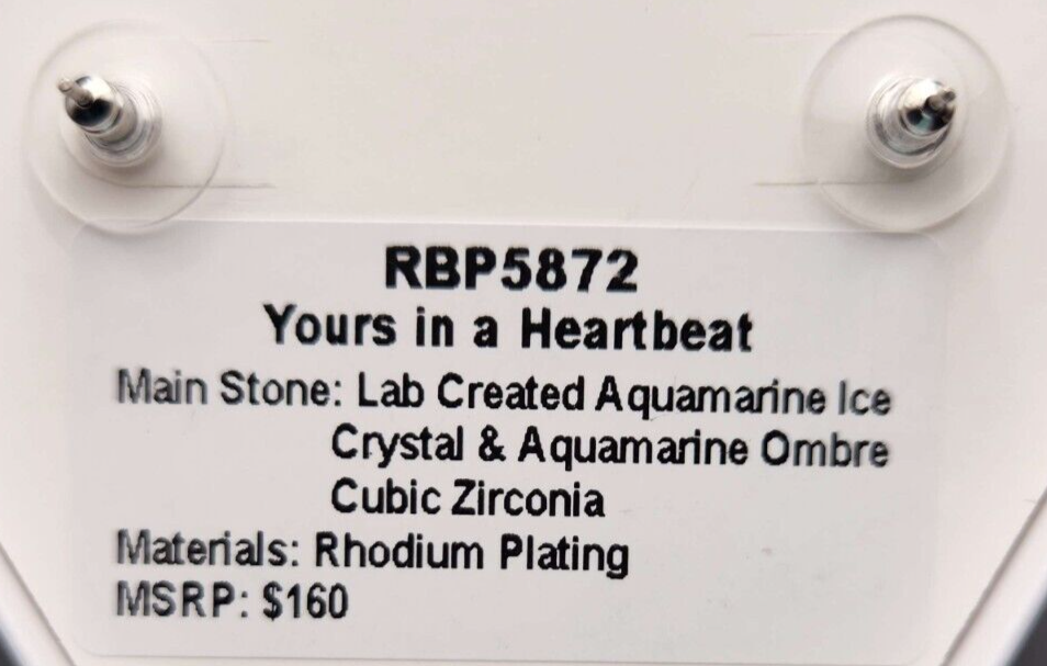Elevate your jewelry collection with these stunning Bomb Party Birthday Collection 2023 "Yours in a Heartbeat". The earrings with Lab Created Aquamarine Ice Crystal & Aquamarine Ombre Cubic Zirconia in Rhodium Plated settings with a removable accent piece. The earrings features a teardrop shaped faceted Aquamarine stone. Also included is a half-moon shaped setting with sparkling clear crystals in a bezel setting which can be worn or removed. These earrings offer secure stud closures ensuring comfort for extended wear. An elegant and timeless style that's perfect for anyone who appreciates a blend of classic sophistication and modern flair. New earrings in the original packaging. I am Happy to combine shipping on multiple items. Stock #87