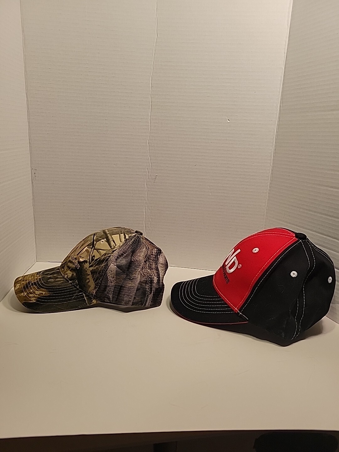This stylish Bond Auto Parts X2 Logo Embroidered Camo Trucker Cap is a perfect addition to any wardrobe. The adjustable Camouflage hat is made of durable canvas fabric and features a classic Trucker Hat style. Ideal for men, it is suitable for various occasions such as Christmas, Birthday, Father's Day, Mother's Day, and Anniversary. The hat comes in a unique Camouflage pattern that adds a touch of style to any outfit. It features an adjustable strap, making it a one-size-fits-all item. This hat is perfect for those who love the outdoors and appreciate quality and style. You get both Bond Auto Parts hsts pictured- both are like new. Hat2