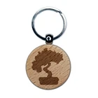 Bonsai Tree Solid Engraved Wood Round Keychain Tag Charm