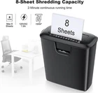 Bonsaii Paper Shredder for Home Use, 8-Sheet StripCut Home Office Shredder, CD/Credit Card Shredder Machine with Overheat Protection, 3.4 Gallons Wastebasket 8-Sheet Shredding Capacity: Home shredder can shred up to 8 sheets of paper at a time, and can shred credit cards/CDs/DVDs/and other important documents to meet your other needs. Overheat Protection: Home office shredder can run continuously for 2 minutes. When the run time is exceeded, the overheat LED will flash red. Allow the shredder to cool for 15 minutes before using again. Easy to Use: Small paper shredder features a safe start mode and manual reverse jam clearing. When the machine jams paper, you can easily solve the paper jam problem by pressing the FWD button. Suitable for Home Office Use: The size of the confetti is 15/64 inches, which can protect your privacy. The 3.4 gallon bin can meet the daily needs of the family. Important Note: Do not spray or keep any aerosol products in or around the shredder. Bonsaii 8-Sheet home use paper shredder Use this Bonsaii strip-cut shredder to thoroughly shred multi-page documents (maximum 8 sheets at a time). The machine can quickly convert the paper into 15/64inches strip (P-2) paper strips, which is convenient and fast to use. Just put the paper in the shredder, the shredder has a light control sensor system, and the shredder automatically shreds the paper. Without your operation. It will even tear up credit cards and CDs/DVDs (one at a time).
