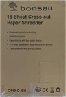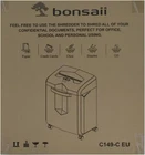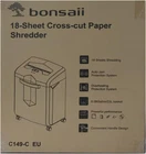 Store New Arrivals Add to Favorite View Feedback Contact Bonsaii Paper Shredder, 18-Sheet 60-Minutes Shredder for Office Heavy Duty Cross-Cut Shredder with 6 Gallon Pullout Basket 4 Casters(C149-C) Description Item model number C149-C Item Weight 23.1 pounds Capacity 6 Gallons Color Black Product Dimensions 1 x 37 x 64 inches Cut Type Cross Cut Recommended Uses For Product Shredding Paper, Shredding Credit Cards Manufacturer bonsaii Is Discontinued By Manufacturer No Brand bonsaii Size 1 8 Sheet Cross Cut 6-Gal 60-Minute Shredding: Bonsaii paper shredder continous running time up to 60 minutes without stopping withh an advanced cooling system and patented technology. Professional paper shredders for home office use heavy duty 18-Sheet Shredding Capacity: The cross-cut shredder up to 18 sheets(Letter Size, 20lb) at a single pass, shreds paper into tiny particles measuring 13/64 x 63/64 inches (5 x 25mm) and reaches P-4 high-security level; shreds credit cards and staples as well Low Noise & Easy to Move The document heavy duty shredder with 62 dB low noise level will give you a quiet and smooth shredding experience and 4 casters for convenience moving to anywhere you want Auto Start & Reverse: Auto start/stop and auto-reverse function protect you from the frustration of paper jams; overheating and overloading protection technology keeps sustainable using and prolong shredder's use time. Press the power switch, you only need to put the paper into the entrance of the shredder and it will work automatically Large Capacity: 6 gallons pull-out wastebasket capacity can hold more than 400 sheets of A4 paper for less frequent and easy emptying; the transparent window makes it easy to see when it is full. If you have any questions during use, plase tell us through Amazon, we have professional customer service to help you within 24hrs Product Description The video showcases the product in use. The video guides you through product setup. The video compares multiple products. The video shows the product being unpacked. 60-Minute Long Running Time Benefiting from a good cooling system, the office shredder can shred for up to 60 minutes continuously, can meet your heavy duty shredding demand. High-Efficiency Motor Strong torsion and power output of the key component motor made the shredding much faster. Improved High-Quality Blades The hard and durable blades allow the machine to shred paper without removing staples and clips, saving time and increasing efficiency. Shreds CD, Credit Card and Paper Clips Not only paper and staples, but also CDs, paper clips and bank cards can be shredded, keeping your information safe in every way. Working Continuous shredding of approx. 6,000 sheets of paper in 60 minutes *Uninterrupted shredding in assumptions Overheat Shredder needs to cool down for 10 minutes to work again Overload Machine will stop working when the shredded paper is more than 18 sheets Safety Protection Shredder will stop working once you pull out the wastebasket 62dB Ultra-Quiet 62dB ultra-quiet operation, No need to worry about disrupting your work or disturbing others when shredding. Jam Proof System This office shredder is equipped with an ultra-durable automatic anti-jam system. Advanced jam detection stops the machine when over-loading to prevent the jam once happening. Bonsaii - Excellence Through Innovation 18-Sheet Cross Cut C149-C Bonsaii Office Shredder Cross-Cut Cut Type Micro-Cut CD/Card/Staple/Clip Shred Ability CD/Card/Staple/Clip 5*25 Cut Size 5*12 18-Sheet Max Pages Per Load 16-Sheet 60 on/10 off Duty cycle (mins) 60 on/10 off 62 dB Noise Level 60 dB 23 L Basket Capacity 23 L Cross-Cut Cut Type Micro-Cut CD/Card/Staple/Clip Shred Ability Card/Staple/Clip 5*25 Cut Size 4*12 18-Sheet Max Pages Per Load 12-Sheet 60 on/10 off Duty cycle (mins) 30 on/60 off 62 dB Noise Level 62 dB 23 L Basket Capacity 23 L Cross-Cut Cut Type Cross-Cut CD/Card/Staple/Clip Shred Ability Card/Staple/Clip 5*25 Cut Size 5*20 18-Sheet Max Pages Per Load 12-Sheet 60 on/10 off Duty cycle (mins) 20 on/45 off 62 dB Noise Level 70 dB 23 L Basket Capacity 16L 16-Sheet Micro Cut C149-D 110-Sheet Auto Shredder 12-Sheet Cross Cut C266-A IMPORTANT Q&A: A1: Please make sure you assemble the head and basket in correct directions. For installation please check: Product guides and documents - Installation Manual (PDF) Q2: Why is the number of sheets that can be shredded lower than the maximum number of sheets described? A2: Please check if the paper is damp, contains plastic or too thick, if so, please let the paper dry before shredding, or remove the plastic part, or reduce shredding sheets per pass. To extend the use time of the paper shredder, please don't shred more than 18 sheets in one time. Q3: The shredder is broken, but the return window is closed. What should I do? A3: bonsaii provides a 2-year service. No matter whether the return window is closed or not, we will provide you with the best solution. *Please ensure that you provide valid reply address to avoid any issues with receiving our response. ABOUT US We offer the best prices around on high quality products. Our E-store includes media such as books, movies, music and games while offering electronics, toys, sporting apparel, clothing, tools, general home, garden items and more. SHIPPING We are always working hard to ensure your package arrives as soon as possible. Please understand that some factors like weather, high postal traffic, and the performance of shipping companies are outside of our control. For shipping outside of the continental USA, we only use eBay's Global Shipping Program.The item is shipped to KY and then sent to the rest of the world. International customers are responsible for all duties and taxes. Continue to check out in order to calculate costs for shipping the item to your country. Messages regarding eBay's Global Shipping Program MUST be directed at eBay EXCLUSIVELY. RETURNS We offer a 30-Day Return Policy on items which you are not 