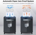 Bonsaii Paper Shredder, 18-Sheet 60-Minutes Shredder for Office Heavy Duty Cross-Cut Shredder with 6 Gallon Pullout Basket 4 Casters(C149-C) Product detials: 60-Minute Shredding: Bonsaii paper shredder continous running time up to 60 minutes without stopping withh an advanced cooling system and patented technology. Professional paper shredders for home office use heavy duty 18-Sheet Shredding Capacity: The cross-cut shredder up to 18 sheets(Letter Size, 20lb) at a single pass, shreds paper into tiny particles measuring 13/64 x 63/64 inches (5 x 25mm) and reaches P-4 high-security level; shreds credit cards and staples as well Low Noise & Easy to Move The document heavy duty shredder with 62 dB low noise level will give you a quiet and smooth shredding experience and 4 casters for convenience moving to anywhere you want Auto Start & Reverse: Auto start/stop and auto-reverse function protect you from the frustration of paper jams; overheating and overloading protection technology keeps sustainable using and prolong shredder's use time. Press the power switch, you only need to put the paper into the entrance of the shredder and it will work automatically Large Capacity: 6 gallons pull-out wastebasket capacity can hold more than 400 sheets of A4 paper for less frequent and easy emptying; the transparent window makes it easy to see when it is full. If you have any questions during use, plase tell us through Amazon, we have professional customer service to help you within 24hrs