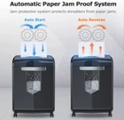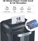 【60-Minute Shredding】Bonsaii paper shredder continuous running time up to 60 minutes without stopping with an advanced cooling system and patented cutting technology. Professional paper shredders for home office use heavy duty. 【18-Sheet Shredding Capacity】The cross-cut shredder up to 18 sheets(Letter Size, 20lb) at a single pass, shreds paper into tiny particles measuring 13/64 x 63/64 inches (5 x 25mm) and reaches P-4 high-security level; shreds credit cards and staples as well. 【Low Noise & Easy to Move】The document heavy duty shredder with 62 dB low noise level will give you a quiet and smooth shredding experience and 4 casters for convenience moving to anywhere you want. 【Auto Start & Reverse】Auto start/stop and auto-reverse function protect you from the frustration of paper jams; overheating and overloading protection technology keeps sustainable using and prolong shredder's lifetime. Press the power switch, you only need to put the paper into the entrance of the shredder and it will work automatically. 【Large Capacity】6 gallons pull-out wastebasket capacity can hold more than 400 sheets of A4 paper for less frequent and easy emptying; the transparent window makes it easy to see when it is full.