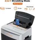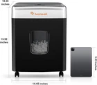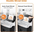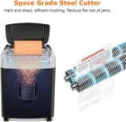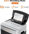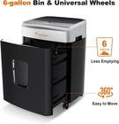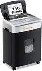 Bonsaii Paper Shredder for Office, 110-Sheet Autofeed Heavy Duty Shredder, 30 Minutes Shredders for Home Office Use, Micro Cut/P-4 High Security Level/6 Gallon Large Bin Product detials: Auto & Manual Shredding: 110 sheets automatic shredding (Shredded paper only), and 12 sheets manual shredding capacity (can shred mail, cards, and staples). Non-stop Shredding: Auto: 30 minutes on/60 minutes off. Manual: 10 minutes on/60 minutes off. The office shredder has a shredding speed of 71 inches per minute. High Security P-4 Level: Micro-cut turns paper into tiny pieces measuring 5/32" x 15/32" (4 x 12 mm), greatly protecting your privacy. Large Capacity & Easy to move: 6-Gallon pullout bin reduces the frequency of emptying. With 360-degree universal casters, you can move the shredder freely. lmportant Note: Do not spray or keep any aerosol products in or around the shredder, and do not shred items like metallic credit cards