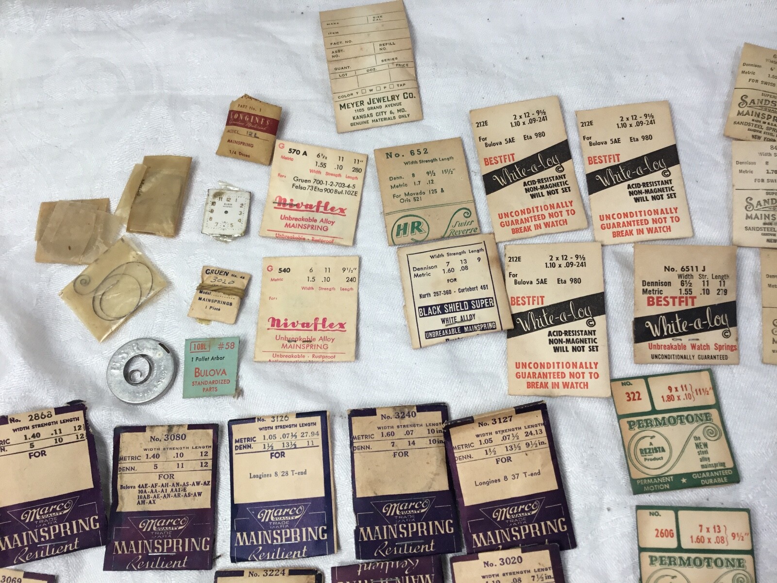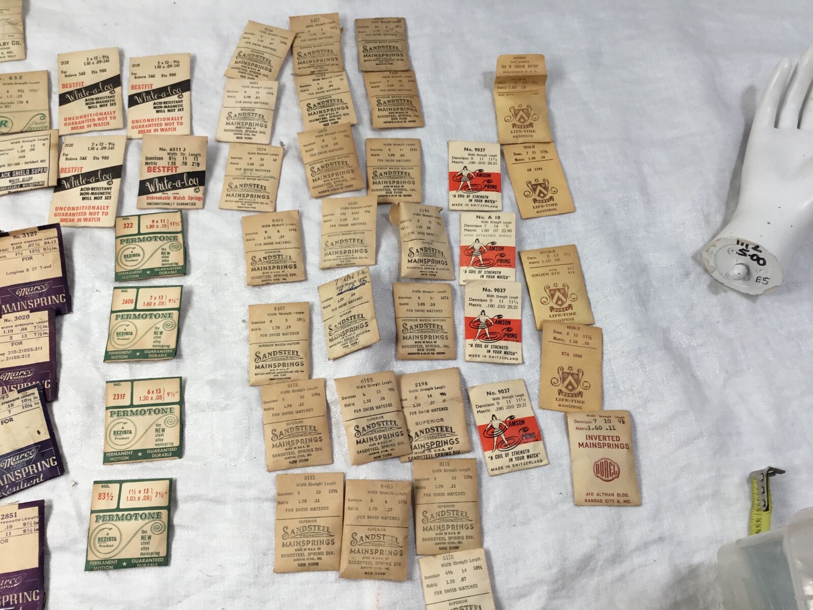 Watch Main springs...Dont know what these are or for or if even work...but there is a bunch of them and they are new in their original packaging. Mom counted and this is best we could figure out. 31 Marco 4 permotone 22 sand steel 4 amson 5 borel 4 whitalog 12 misc. We sell vintage, pre-owned, used items. They may not be perfect and may have a little wear from use. We will disclose any flaws we see to the best of our ability. We provide photos, Please review photos carefully, as they represent an accurate description. Ask for more if you need them. We are not knowledgeable about all items we sell so be sure to ask any questions. We never knowingly misrepresent anything. If an error has occurred please contact us directly within 3 days of receiving your item so we can correct the issue professionally prior to opening a return item request. Items are sold as found. All sales are final.
