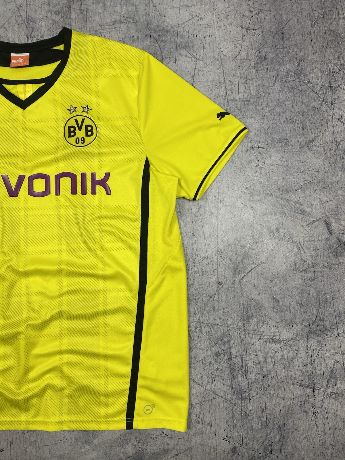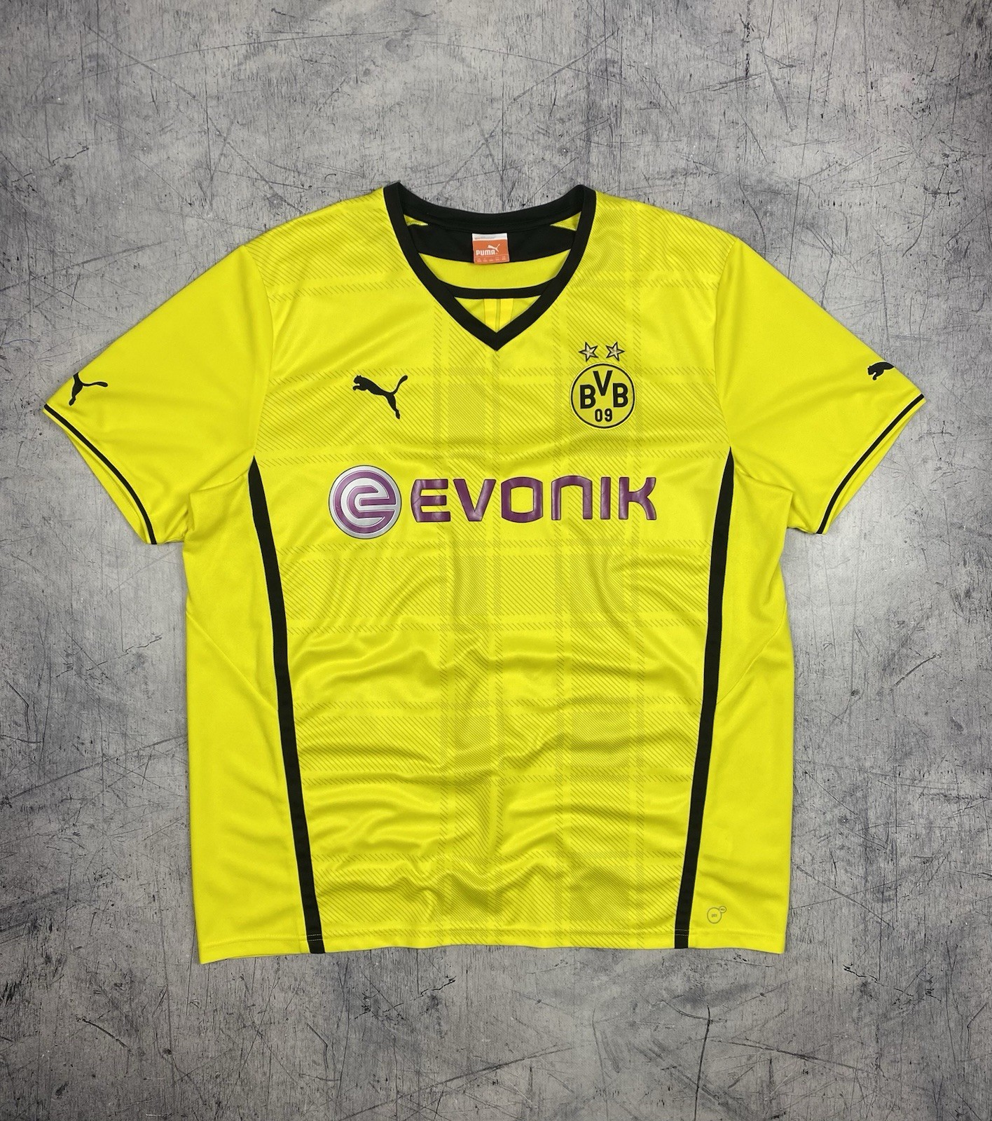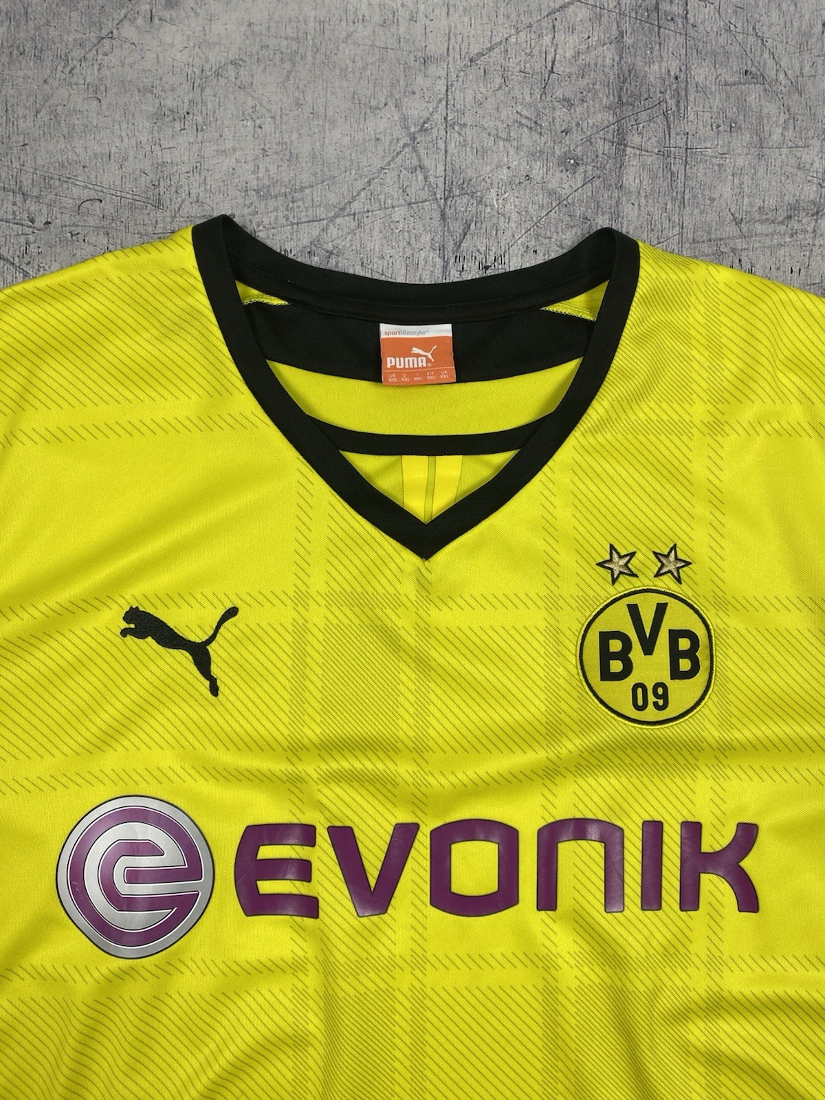 Official Borussia Dortmund 2013/2014 Home Football Shirt by Puma. Authentic home jersey from the 2013/14 season. Adult Size XXL (see measurements below for best fit). Condition: Good overall condition, approximately 8/10. There are a few small stains, which are clearly shown in the photos. No holes or major damage. Please review all pictures carefully before purchasing. ⸻ Measurements (approx.) • Shoulders: 50 cm / 19.7 in • Chest (pit to pit): 62 cm / 24.4 in • Length (back): 76 cm / 29.9 in ⸻ Additional information • Original Puma product • Classic Borussia Dortmund home colors • Perfect for fans, collectors, or matchday wear 📌 Please note: pre-owned item — minor signs of wear may be present. 📌 Measurements are taken flat and are approximate.