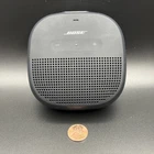 Bose SoundLink Micro Bluetooth Waterproof Speaker in Black. It is made of high-quality Silicone material and comes with a Micro USB connector for easy charging and connection. With its Bluetooth wireless technology and Audio Inputs of Micro-B USB, you can easily connect your device and enjoy your music without any hassle. This Bose SoundLink Micro speaker system is perfect for those who love to stay connected and enjoy their music on the go.