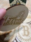 The product is a set of four wooden engraved coasters featuring the Boston Red Sox team logo. The design is inspired by the Fenway Beer Fest, making it a unique and stylish addition to any fan's collection. Perfect for enjoying beverages while showing support for the team.