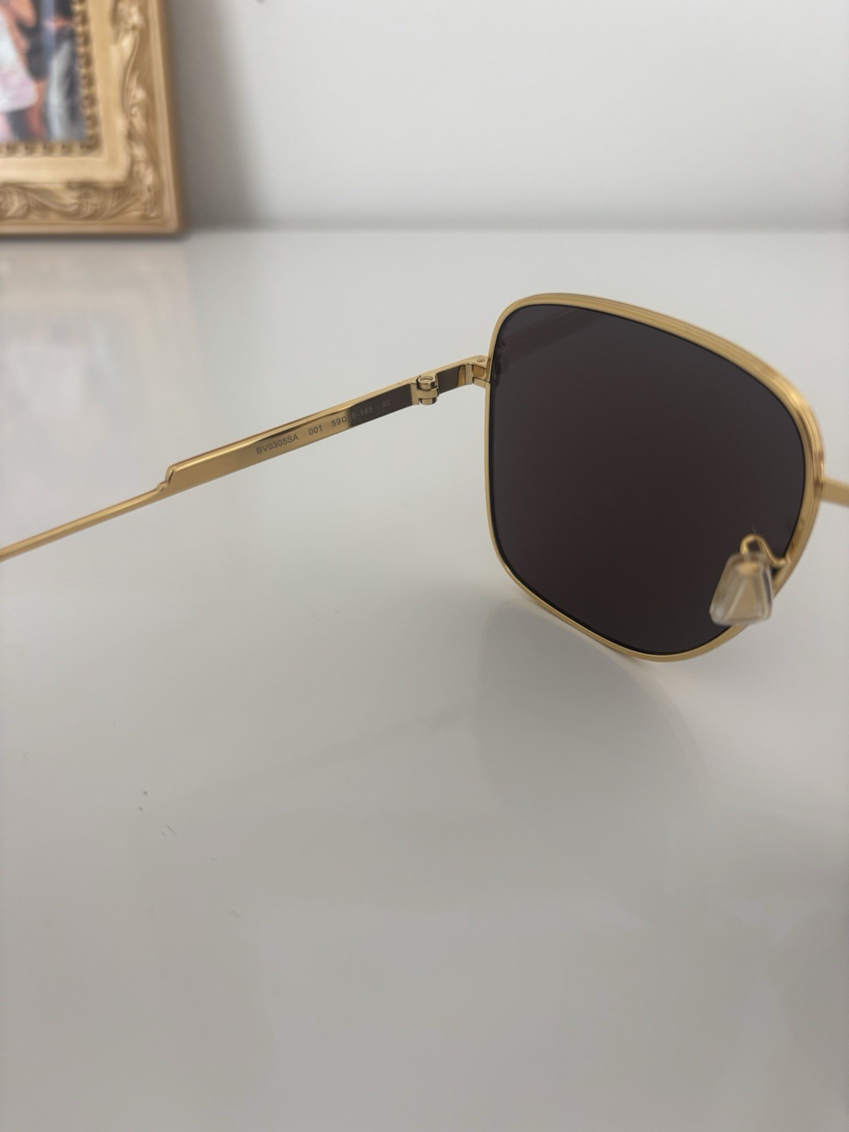 The Bottega Veneta Sunglasses in gold and brown are a stylish and high-quality accessory designed specifically for women. With UV400 protection and tinted glass lenses, these sunglasses offer both fashion and function. The metal frame and designer theme add a touch of sophistication to any outfit, making them a versatile and chic addition to your wardrobe.