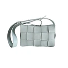 Bottega Veneta Baby Blue Leather Cassette Shoulder Bag Attributes Material: Leather Color: Baby Blue Condition: Good condition, has minor scratches Inclusions: Dustbag H: 14cm L: 22cm W: 5cm