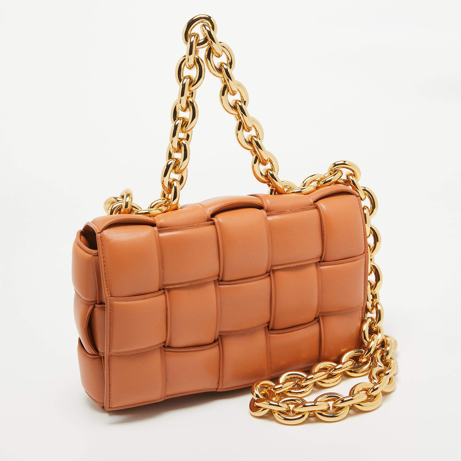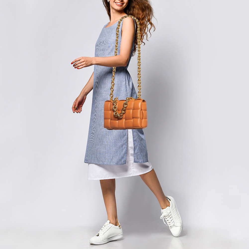 Our eBay Store About Us Contact Us Add to Favorite Sellers Bottega Veneta Brown Padded Leather Chain Cassette Shoulder Bag Designer bags are ideal companions for ample occasions! Here we have a fashion-meets-functionality piece crafted with precision. It has been equipped with a well-sized interior that can easily fit all your essentials. Product Details Brand Bottega Veneta Includes Info Booklet, The Luxury Closet Packaging Certified by The Luxury Closet This item has gone through a detailed authentication process overseen by our experts. We offer a lifetime guarantee of authenticity on all our items. How We Check The in-house team of experts at The Luxury Closet is highly trained to verify the authenticity and the condition of the luxury products. They ensure that only 100% authentic items are put on sale.The evaluation process is unique with its own mix of assessment criteria and differs according to the category. Each item is evaluated based on the following combination of hallmarks, hardware, stitching, symmetry, material, craftsmanship, stamping, codes, hologram stickers, and packaging. Our authenticators also check if the items have been modified or amended (e.g., aftermarket diamonds, replaced batteries, repaired bags, etc.) Please note that this handbag may have a perfume scent, as it was stored and packaged in Dubai where such fragrances are commonly used. International Buyers Import duties, taxes and charges are not included in the item price. These charges are the buyers responsibility. Please check with your country’s customs office to determine what these additional cost will be prior to buying.