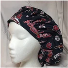 These are handmade Surgical Scrub Caps, (3) Styles, Biker-Skull Caps, great for all people. All of our Basis Scrub Caps, Ponytail Caps, Doo Rag, Bikers-Skull Caps have a satin lined crown, please note that the colors may be different than the pictures due to fabric availability, and your screen. All of my caps are 100% Cotton, Single-layered to keep your head feeling fresh and cool. I recommend washing your cap in cold water, or wash by hands, just to extend the life of your cap. (All of my caps are hand-sewn by me), Lena. FABRIC: 100% Cotton SIZE: One-Size-Fits-All DIMENSIONS: 5" height, Fits Heads 22" and above Legal Disclaimer (sorry, this is for lawyers!): This handcrafted item was made from officially licensed fabric. However, I am not affiliated with the University, the Team or the manufacturer of the fabric, therefore the handcrafted finished item IS NOT licensed by the University, the team, the league or the manufacturer of the fabric. The United States Supreme Court gives me the right to sell these handmade fabric items according to the "first sale doctrine" upheld in the court ruling of Quality King Distributors, Inc. v. L'Anzaresearch Int'l, Inc (98 F.3d 1109, reversed). Justice Stevens: "The whole point of the first sale doctrine is that once the copyright owner places a copyrighted item in the stream of commerce by selling it, he has exhausted his exclusive statutory right to control its distribution."