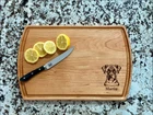 Design: Personalized Boxer Dog Cutting Board or Charcuterie Serving Tray All items ship via USPS - please make sure your address is correct :-) Whether used as a charcuterie serving tray for snacks or cutting board, our bamboo, walnut and cherry custom boards are the perfect addition for the home and make the perfect gift for your loved one celebrating a birthday, anniversary, new home, wedding, etc! *** FEATURES *** • SIZES: We have multiple styles and sizes available. To see our current sizes available, click the drop-down menu. The photo slide contains a photo showing each side by side. Please note, the board with the juice groove only has the groove on the front side of the board. • THICKNESS: Bamboo Boards - Approximately 1/2" Thick; Walnut & Cherry Boards - Approximately 3/4” Thick • UNIQUE: Every board is unique with the grain and coloring varying throughout - no board is the same! • CARE INSTRUCTIONS: Hand wash only with warm water. Do not soak. Please apply mineral oil throughout the board’s life. • PERSONALIZATION/CUSTIMIZATION: Do you want the text placed differently on the board? Please don’t hesitate to contact us. All personalization notes can be entered in the personalization box when checking out. • SHIPPING: All cutting boards ship within 2 to 5 business days. • WHOLESALE ORDERS: Please don’t hesitate to contact us for information about wholesale orders. Processing times for larger orders may change. • NOTE: Colors can vary a bit on different monitors and screens. Any props included in photos are not included. Please be sure to double-check your address to make sure it is accurate for USPS delivery. If a package is returned to us due to an invalid address, the buyer is responsible for all additional shipping charges. We appreciate you supporting small business – best wishes! For items ordered with simple edits, we do not send proofs since the layout doesn't change from the example(s). However, in the event there are requests that change the layout from the example(s), we do send proofs for approval before making the product. If you'd like a proof before we make the product, please note so in the personalization box.