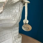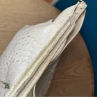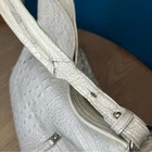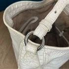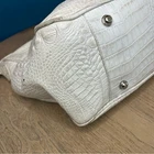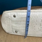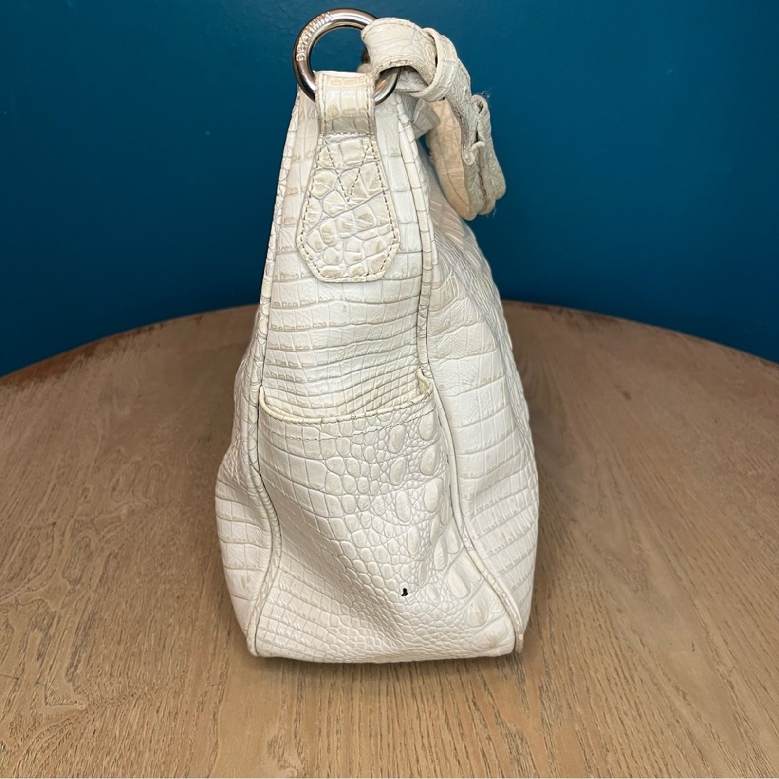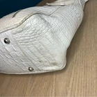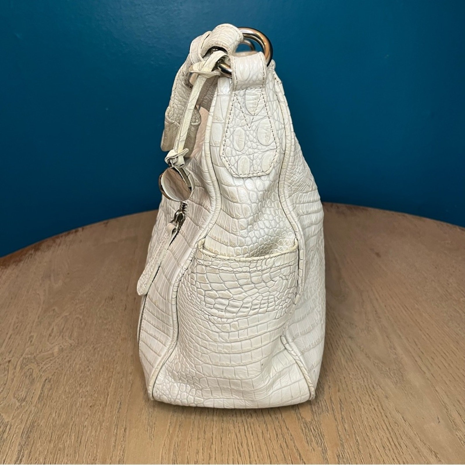 Brahmin Hobo Crocodile Embossed Slouchy Leather Bag Pearl White wear from normal use on handles and bottom corners-pictured stain on bottom of interior lining-pictured small black mark on side-pictured Please review all photos and measurements!