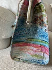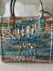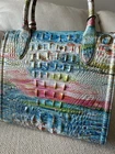 The SMALL CAROLINE is a scaled-down version of the popular Brahmin Caroline Satchel. Various interior pockets keep your items organized all day, while a pen loop and key clip make it easy to find your essentials in seconds flat. An adjustable crossbody strap and comfortable rolled handles make this 'it' piece the perfect companion on every adventure. Featured in STAYCATION -a colorful Beach print on a beachy background - is a vibrant, artistic print described as an abstract, sunny beach day inspired by Impressionist paintings. It features a playful, cheerful blend of hues designed to bring "effortless elegance" to spring and summer Genuine croc-embossed leather. Zip top closure Rolled handles Removable adjustable crossbody strap Back slide in pocket Pen pocket Jewelry pockets Interior zip and organizer pockets Key clip 4.25" handle drop 25" strap drop Dust bag included MEASURES... 10.25 x 9.25 x 4.75 Comes with Brahmin Information Card, Care Card and Dust Bag. Condition is Brand New with manufacturer tags attached. Has been stored in a pet free, smoke free, climate controlled environment at all times. Item will be shipped out same day or next business day. Please contact me with any questions you may have. I respond promptly to all inquiries.