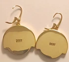 Add a touch of elegance to your outfit with these stunning DKNY earrings. The gold tone and black leverback closure creates a beautiful contrast that will make you stand out from the crowd. The onyx stone adds a touch of sophistication to the overall design, making these earrings the perfect accessory for any occasion. The round shape and dangle/drop style give a unique and modern twist to the classic earring. The earrings are perfect for those who love beauty and fashion. They are made with yellow gold plated metal and have a leverback closure for easy wear. These earrings are a must-have for any jewelry collection and are sure to impress.