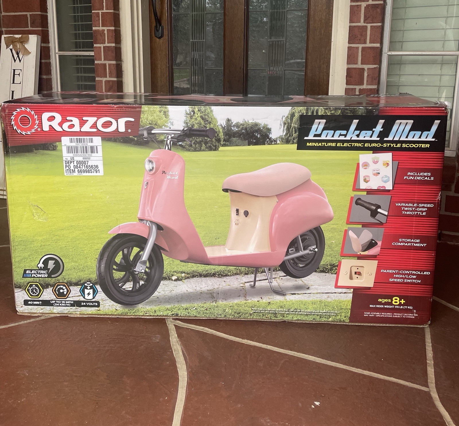 - Brand New! - Razor Pocket Mod Miniature Euro-Style Electric Scooter! - Capri Pink! - Ages 8+ - Fast/Secure Shipping! - Let me know if you have any questions!