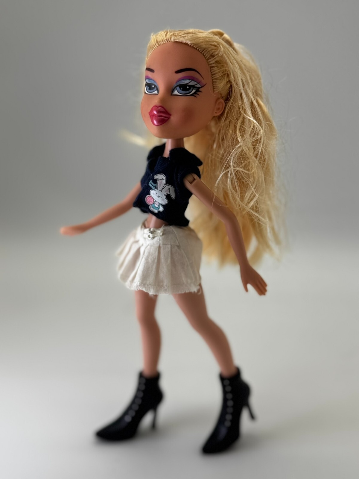 Bratz Doll 2001 Funk Out Cloe with black shoes and single outfit(shown). Sadly, does not include the rest of the original accessories. Doll does not stand on it's own. (I'm just very quick at taking a photo before she fell over.) Payment is expected in 1-day after auction ends. Perfume: All bottles are cleaned with alcohol prior to photos being taken, so when they arrive, they’ll be ready to use. Ships with a protective sticker cover, to avoid potential spills in transit. Must be shipped ground, due to USPS requirements. Can group shipping with multiple purchases. Recycled packing materials used to package your order. Please reach out if you have questions. Items sold AS-IS, see photos for any defects. Thank you for shopping Attack Chicken Resale. ;-)