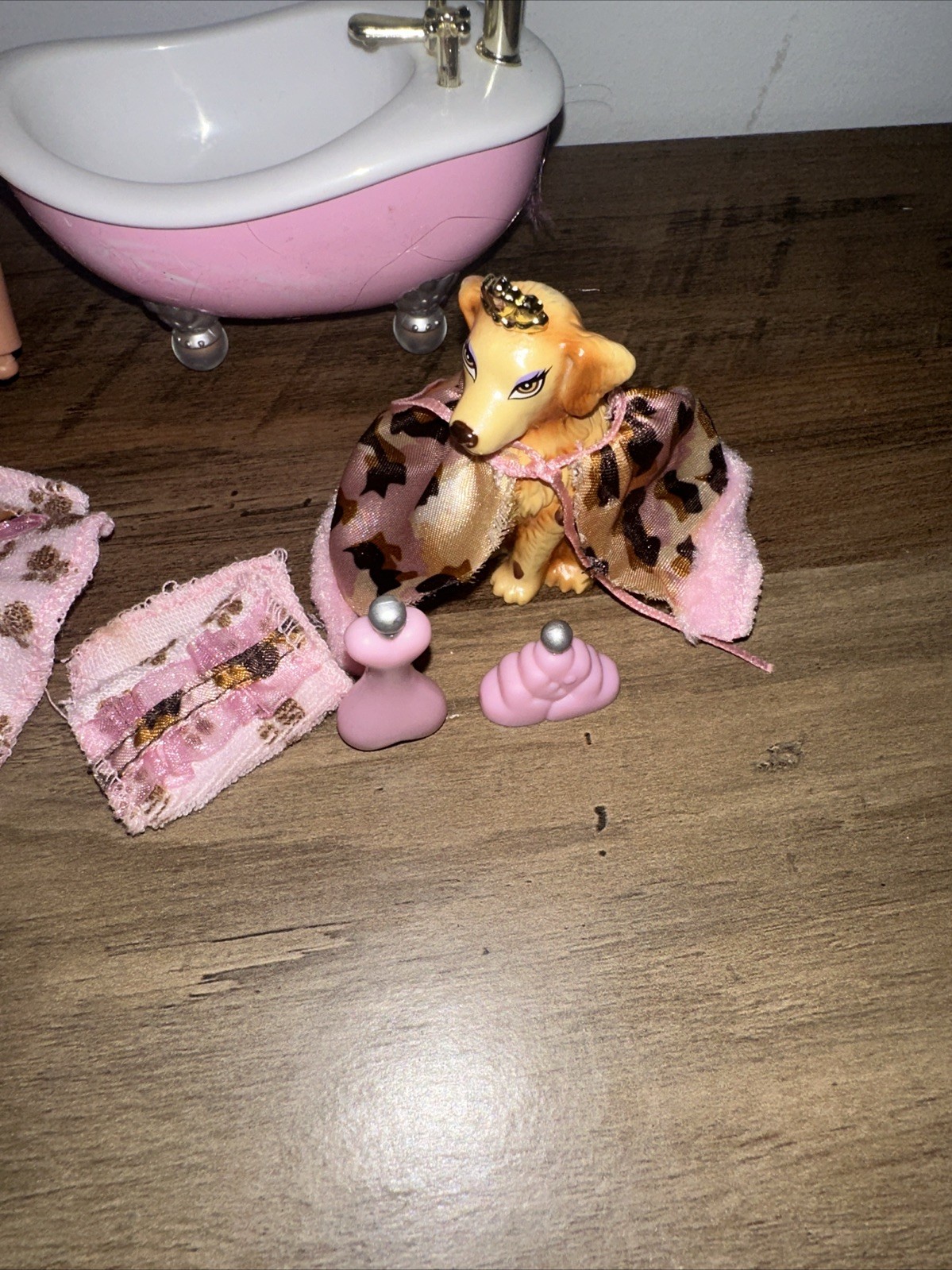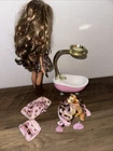 *Missing one boot* The Bratz Pampered Pupz Yasmin Salon Style Fashion Doll is a stylish and trendy fashion doll featuring the character Yasmin from the Bratz brand. This doll is designed for children who enjoy playing with dolls and creating imaginative stories. The set includes everything needed to create a salon-style fashion experience for the doll, making it a fun and interactive toy for kids to enjoy. With its unique design and attention to detail, this Bratz doll is sure to provide hours of entertainment for young doll enthusiasts.