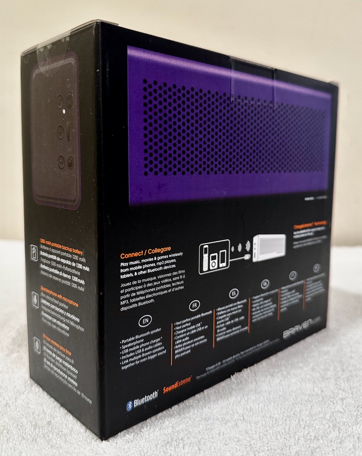 NEW BRAVEN 570 Portable Bluetooth Speaker in PURPLE Stylish and versatile Easy to pair with any compatible devices Sleek rectangular shape and purple color add a touch of sophistication