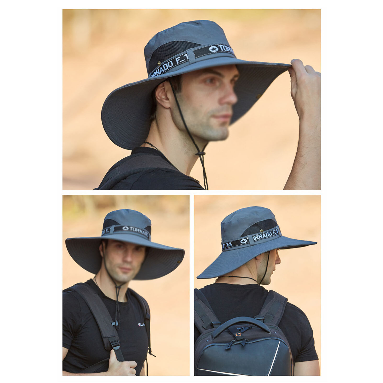 Feature: 1. Suitable Scene: Our men's sun hat has wide application that is suitable for daily wear, vacation, outdoor sports, mountain climbing, etc. 2. Features: This fishing hat features stereoscopic cut, which is comfortable and breathable, with enlarged brim that is very practical. 3. With Air Holes: The sun hat is designed with air holes and a thin layer of inner mesh, which is very soft and suitable for pasting in summer. 4. Cotton Polyester: The large brim sun hat is made of premium cotton polyester material that is comfortable to wear. 5. Snap Design: The sun hat adopts a snap design, and the belt length can be adjusted freely to find the length that suits you. Specification: Item Type: Fishing Hat Material: Cotton polyester Gross Weight: 130g/4.6oz Cap Circumference: 58-59CM/22.8-23.2in Hat Brim: 12CM/4.7in Cap Depth: 10CM/3.9in Package List: 1 x Fishing Hat