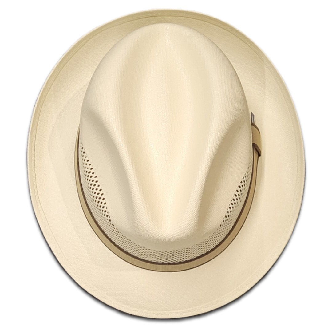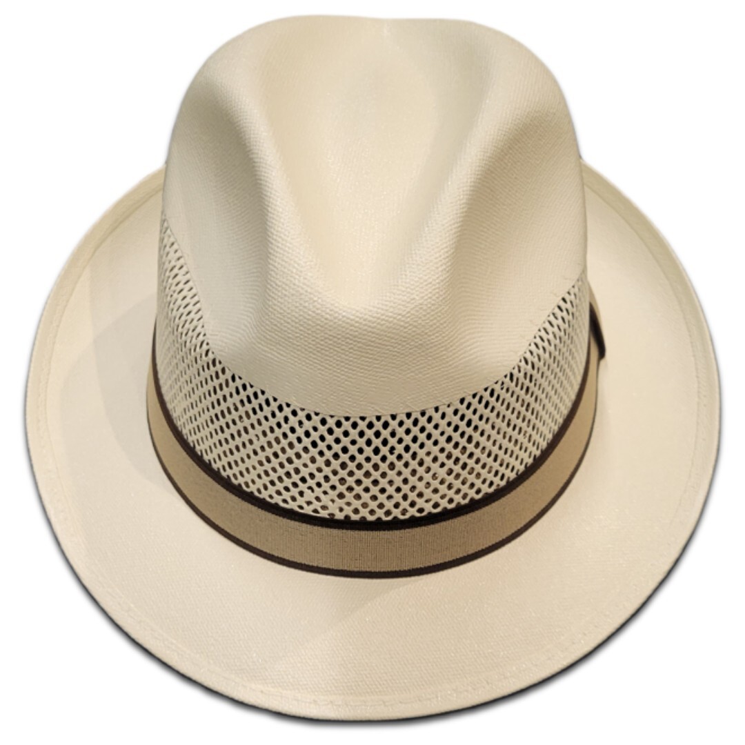 Stylish & Practical– look fashionable on the beach, golf course, or yard work at home while protecting your head from harmful sun rays · Breathable & Lightweight– Sits light on the head, mesh design allows air to pass through for a cool & breezy feel · Firm & Waterproof– repels rain to keep your head & shoulders dry · Designed for Comfort– internal elastic fabric band ensures a comfortable fit · Lasting Quality– will not crumple or lose its shape if properly maintained, unlike typical soft style straw hats Firm Straw Fedora - Beige and Brown Band, Size Medium - stylish, firm, breathable, weatherproof, lightweight, designed for comfort. · Look good while protecting your head from rain or shine! · Provides protection from the sun's heat and harmful UV rays to stay cool with a vented breathable mesh top. · Keep your head and shoulders dry in the rain with the water repelling nature of this brimmed hat, with a 2” brim width. · Lightweight straw construction with internal elastic fabric band for a comfort fit. Firm durable straw material will hold its shape for lasting quality. · An ideal headwear for the beach, for golfing, hiking, or other outdoor activities. · Hand crafted, therefore variation from item to item may exist · Sizes tend to run small, refer to sizing chart