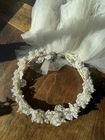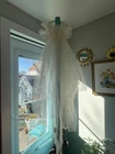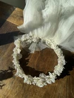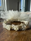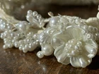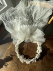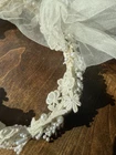 Gorgeous wedding headpiece circlet with pearls rhinestones and lace. In branded. 7” across inside measurement. 3 feet long. There are 2 small tears 1/2” in the tulle at the bottom of the veil. Not noticeable. See photos.