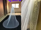 This beautiful bridal veil is the perfect finishing touch to your wedding day look. Made with delicate net material, it features intricate designs of crystals and rhinestones that add a touch of elegance to any outfit. The veil is handmade and comes in a cathedral length, making it perfect for any bride looking for a classic and timeless look. The ivory color of the veil complements any dress and the beaded details add a unique touch to this special accessory. Whether you're planning a formal ceremony or a casual wedding, this veil is sure to impress. Don't miss out on the chance to make your wedding day even more memorable with this stunning bridal veil.