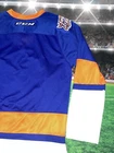 Item is nice little spot on the sleeve smoke free Show your support for the New York Islanders with this Bridgeport Sound Tigers AHL hockey jersey. Made by CCM, this jersey is perfect for any fan of the National Hockey League (NHL). It features the team's colors of blue and the iconic Sound Tigers logo on the front. This jersey is a size small and made for men. It is perfect for any fan of the Islanders looking to show their support for the team. Whether you're heading to a game or just want to add to your collection of fan apparel, this jersey is a great choice.