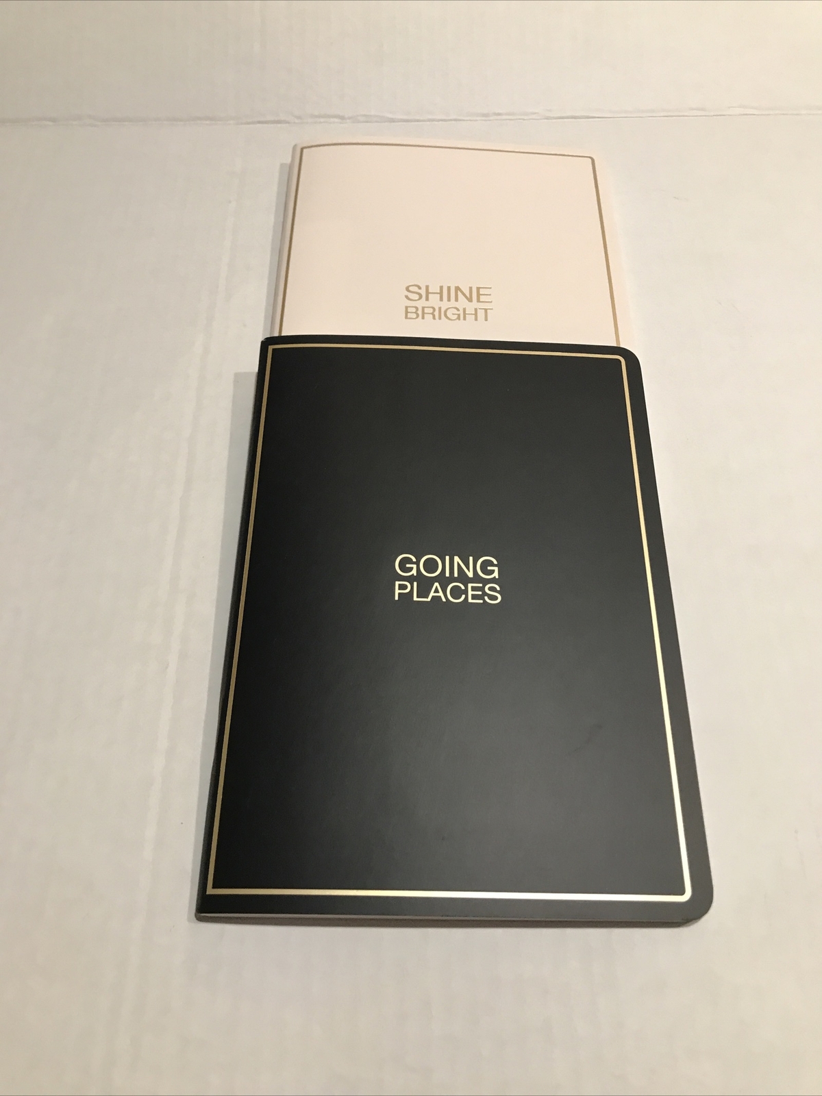 Journal Notebook Going Places Shine Bright 2-pack Black Light Pink 5x8 Features Inspiration Shine Bright Going Places 1-Black 1-Light Pink 5x8 Paper Cover 60-Lined Pages Item ships USPS Thank you for shopping with us.