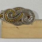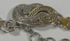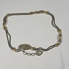 The Brighton Bali Hai Scroll Chain Metal Belt is a stylish and adjustable accessory for women. Made of metal with a herringbone pattern and heart character, this two-tone silver and gold belt features a skinny design and scroll accents. With a vintage appeal and classic style, this chain belt adds a touch of elegance to any outfit. The adjustable size makes it perfect for a waist size of 31-33 inches, while the nickel tone hardware ensures durability and quality. Made in Taiwan, this Brighton belt is a must-have for those who appreciate timeless fashion. *** Shipping costs are what I am charged.*** I do not control the cost of shipping.