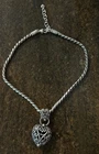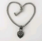 The Brighton Bibi Heart Necklace is a stylish and charming piece of jewelry featuring a silver-plated heart pendant with a hook closure. This retired design by Brighton is perfect for any occasion and is signed by the brand. The necklace exudes a bohemian theme with a pendant style that is adjustable and offers a touch of love and heart-warming sentiment. Made of metal, this necklace is a vintage piece that adds a unique and timeless touch to any outfit.