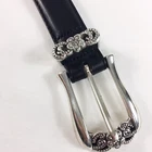 Brighton Leather Belt Size M 30 Beaded Silvertone Buckle Black Leather model Q3003 Brighton Black Leather Belt w/ Black Beads and Tiny Silver Flower Medallions accents Size M30 (S-M) Approximate Measurements:33" In Length, 1" In Width Buckle 2" x 2" Original Retail price is $43 Fits waist up to 29" maximum.