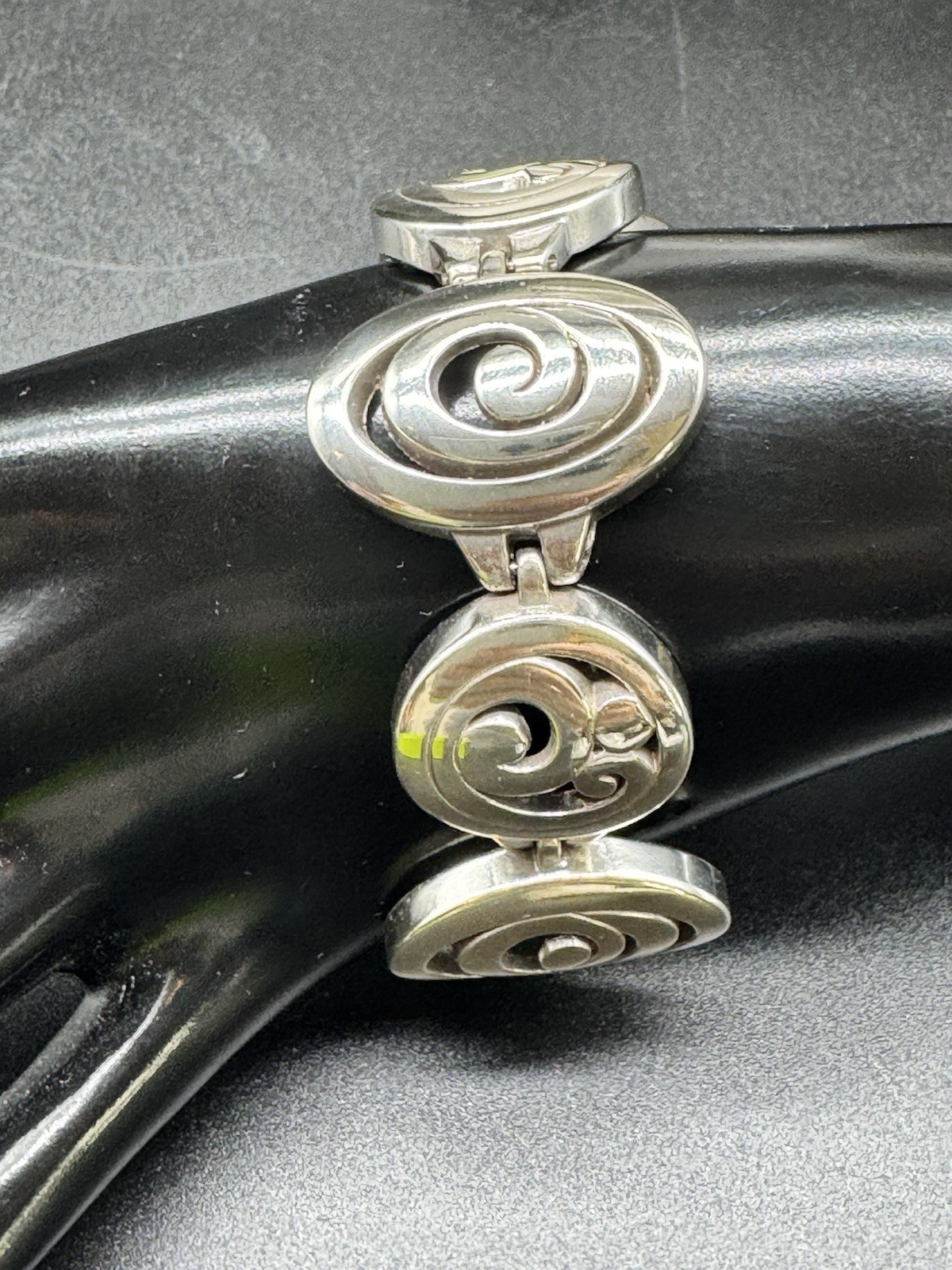 Brighton Silver-Tone Oval Spiral Link Bracelet Signed Heart Logo 8’’ ⸻ Description: Step into timeless style with this eye-catching Brighton silver-tone link bracelet. Featuring a series of six dimensional oval links with modernist spiral motifs, this striking piece showcases Brighton’s signature heart logo clasp and is stamped with the Brighton name. Each raised swirl link adds texture and retro flair, perfect for layering or making a standalone statement. The bracelet measures approximately 7.5 inches long and secures with a fold-over clasp for comfort and durability. • Brand: Brighton • Metal: Silver-tone (not sterling) • Style: Oval spiral links • Length: Approx. 8’’ • Closure: Fold-over clasp with Brighton heart logo • Markings: Stamped “Brighton” and heart “B” logo • Condition: Gently pre-owned with light surface wear consistent with age Brighton jewelry is known for its collectible quality, elegant design, and lasting style. Whether you’re dressing up for a night out or adding a pop of polish to your everyday wear, this bracelet delivers. ⸻ Keywords: Brighton bracelet, silver tone jewelry, oval link bracelet, spiral motif, designer signed, vintage-inspired, collectible Brighton, heart clasp, Brighton jewelry, gift for her, bracelet with logo ⸻ Shipping & Shop Note: I try to ship within 24 hours, excluding weekends and holidays. I’m always listing new treasures, so follow my shop Vintage Wowzers and come back often. Thanks for shopping, and have a wonderful day! 🌟 ⸻JUNE0025