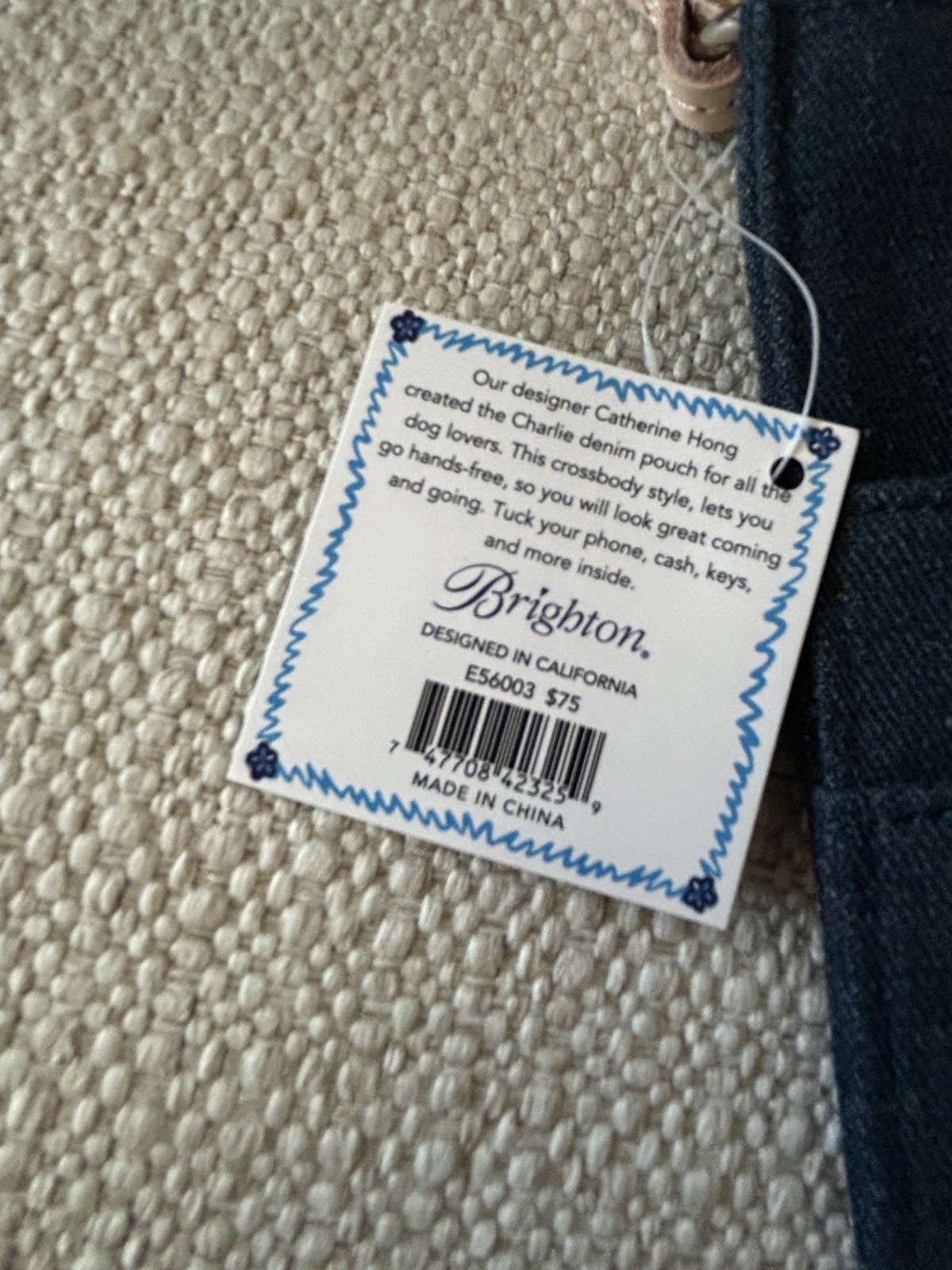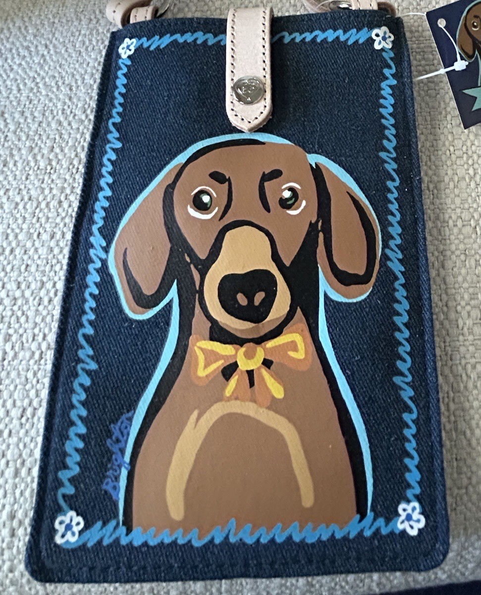Charlie Denim Pouch Starring a member of our “fur family,” this pouch features our designer Catherine Hong’s hand painted art, which we printed onto fine denim fabric. This way you can take your four-legged friend with you everywhere! It’s all about being minimal and just carrying what you need – or if you are a maximalist you can tuck this pouch into your tote. A leather strap makes it a super-versatile crossbody. Exterior Material Denim Top Closure Snap Exterior Pockets 2 Strap 23" Total Width 5 1/4" Height 8" Depth 1" Weight 0.4 lbs