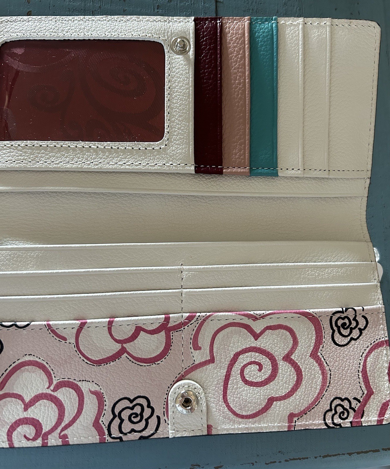Brighton Fashionista Paris Blooms Slim Wallet Style T3582M MSRP $215 NWT Paris Blooms captures a theme designer Tom Clancy was always passionate about. It’s a very feminine interpretation of his previous collections about Paris. Exterior Material Leather Closure Snap Interior Pockets 3 Exterior Pockets 1 Credit Card Slots 11 Features ID window Width 7 1/2" Height 3 1/2" Depth 1/2"