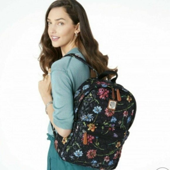 Brighton Heart to Heart KIRBY Backpack $365 WILD GARDEN FLOWERS QUILTED NWT new with tag inside greed marked out to prevent returns smoke and pet free home light weight pouch inside no sleeper nylon quilted Width: 13" Height: 17" Depth: 4 1/4" Strap: 18" - 21" Adjustable Top Closure: Ziptop Interior Pockets: 7 Exterior Material: Nylon Interior Lining: Nylon Exterior Pockets: 3 Features: Feet/Removeable Pouch