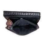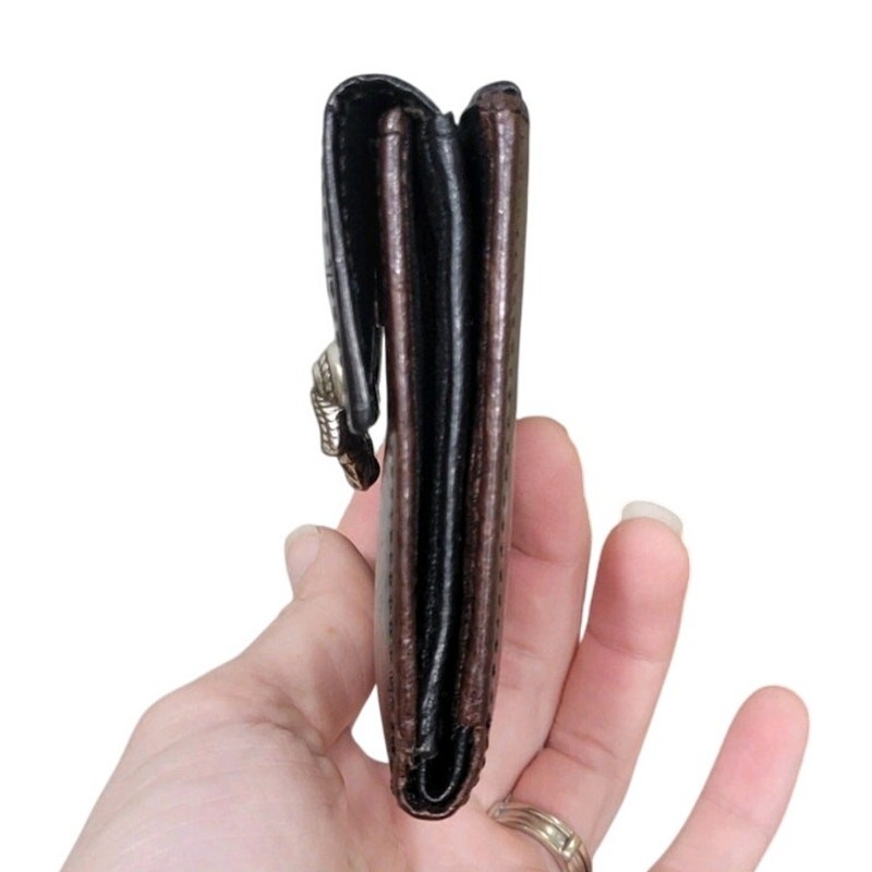 Brighton Leather Wallet Women's Croc Embossed Brown Black Bifold Small 4x4 Gently pre-owned condition. Minor leather scuffing as pictured. Brand: Brighton Approximate measurements: 4x4