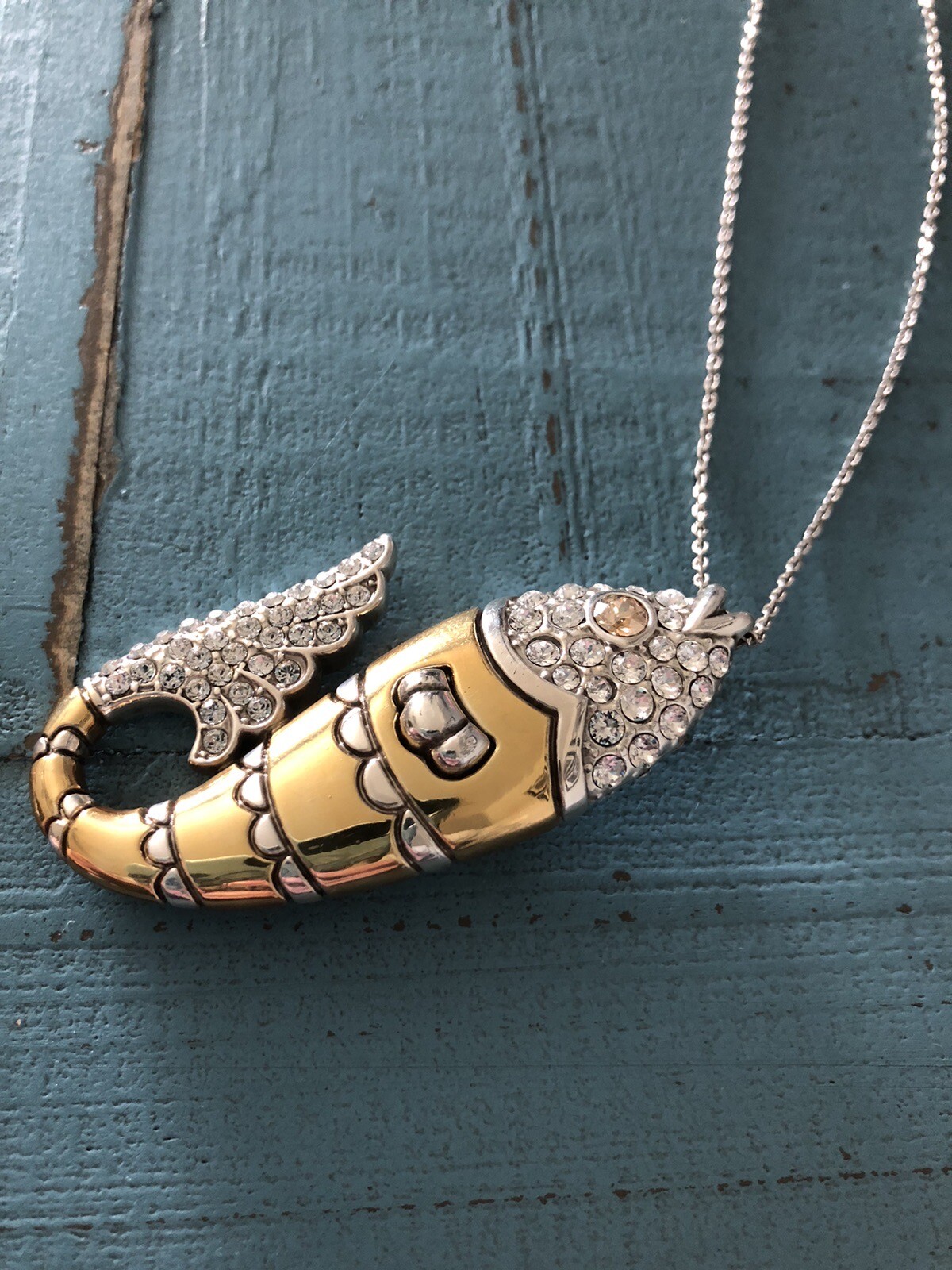 The Brighton Ocean Dream Fish Pendant Crystal Long Convertible Necklace is a stunning piece of jewelry, so whimsical! Closure: Lobster Claw Length: 17" - 36" Adjustable Features: Convertible Pendant Drop: 2 1/8" Material: crystal Finish: Silver plated JL7410 Pouch included