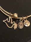 Great for Christmas gift.Add a touch of elegance and charm to your outfit with this stunning Brighton Bangle Bracelet. The bracelet features a beautiful olive branch and dove peace charm in silver tone, perfect for any occasion. The bracelet is made of mixed materials and has a round shape, with an adjustable feature for a comfortable fit. This bracelet is a must-have for anyone who loves beauty and peace themes. The charm type is a dangle and the metal is of unknown type, but the bracelet has a silver finish. The item length is as shown in the picture and the brand is Brighton. This bracelet is a perfect addition to any jewelry collection and will make a great gift for someone special.