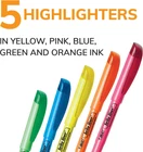 One 5-count pack of BIC Brite Liner Highlighters Assorted Colors with one of each of the follow colors: yellow, pink, blue, green and orange Dependable highlighters bulk pack with a chisel tip for broad highlighting or fine underlining Highlighter set with translucent ink that emphasizes what's important on the page without obscuring the highlighted text Long-lasting colorful highlighters write up to eight hours without drying out even with the cap left off ACMI-approved highlighters are a perfect addition to your art, school or office supplies Five highly visible, colored highlighters in blue, green, orange, purple and iconic yellow highlighter Make organization fun and easy with the BIC Brite Liner Highlighters Assorted Colors. These highlighters have a chisel tip for broad highlighting or fine underlining, making them perfect for highlighting school or office documents. BIC's highlighter markers use translucent ink to emphasize what's important on the page without obscuring the text below. Reliable and long-lasting, each BIC Brite Liner highlighter writes for up to eight hours without a cap and does not dry out, so you can work with confidence. The convenient pen-shaped design lets you easily grip and comfortably use the highlighters to organize your notes or underline passages in textbooks, notebooks and documents. Looking for classic highlighters for journals or assorted color marker sets for adults? BIC Brite Liner Multicolor Highlighters add a fun pop of flair to your art, office or school supplies. Each pack contains five chisel tip highlighter markers in the following assorted colors: yellow, pink, blue, green and orange. BIC highlighters are ACMI-approved for a high-quality, safe product you can trust. Whether you're emphasizing text or just feel like getting creative, choose BIC Brite Liner Highlighters.