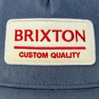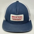 Brixton Custom Quality Trucker Hat Baseball Cap BRXTN Skater Skating Skateboarder Skateboarding Surfing Surfer Surfboarding Surfboarder Streetwear Five Panel A-Frame Mesh Snapback Blue Will be shipped in a box. CONDITION: Has fading and staining on the patch. No other flaws noticed. Has been cleaned and sanitized. See photos.