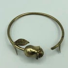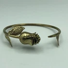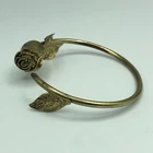 This is a secondhand cuff bangle. The bangle is made from bronze tone metal with cuff ends that have a 3D rose and leave design This is used in good condition with some minor signs of wear/scratches/tarnish. This is an adult size at approximately 6.8 cm internal diameter and it pulls apart to put on.
