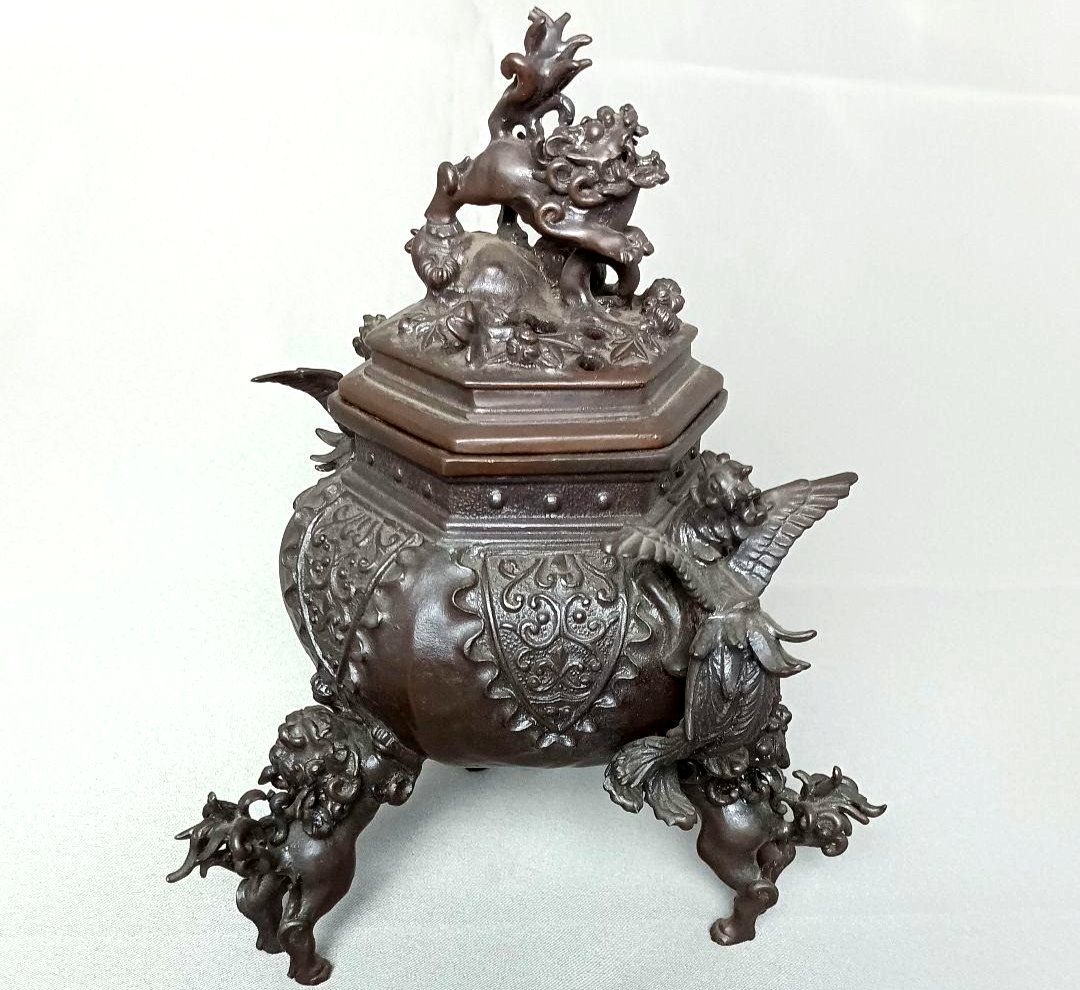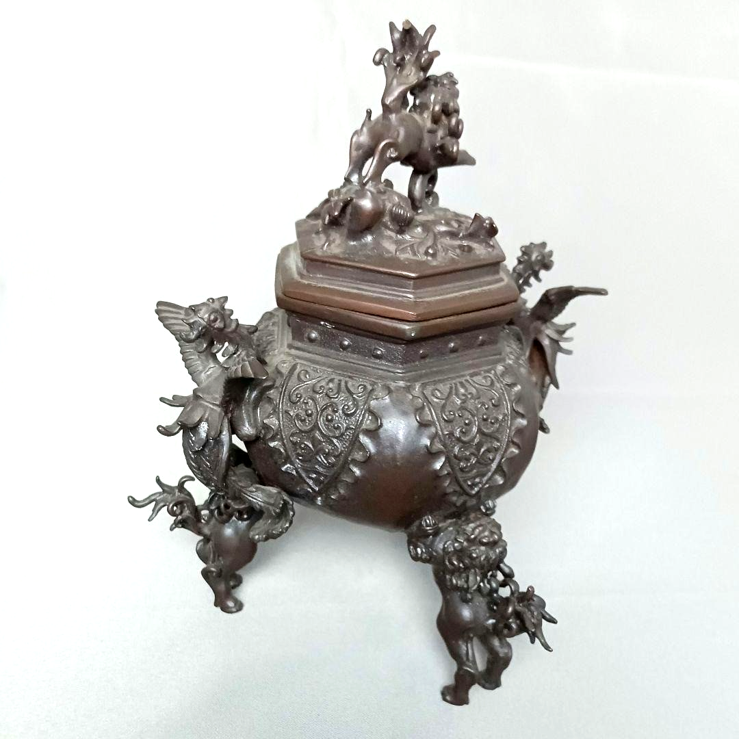 Vintage Bronze Censer PHOENIX LION Japanese Incense Burner Signed GENI 7.1 in Vintage Bronze Censer PHOENIX LION Japanese Incense Burner Signed GENI 7.1 in Description SIZE Height: 7.1 inch Width: Length: In most cases, accessories shown in the photos (such as stands or original storage boxes) are not included with the item. If any accessories are included, this will be clearly stated in the item title. For details regarding the item’s condition, please refer to the photos. If you have any questions or if the condition is difficult to judge from the images, feel free to contact us. We are happy to assist you and will respond kindly and promptly. Payment Supports managed payments Please pay within 5 days after auction is finished. About Us We ship worldwide. Feel free to ask any questions in English, German, French or Spanish. We are located in Japan. It's our pleasure to make you happy by proposing our recommend item. If you have any questions or request about items, please feel free to ask us. International Buyers - Please Note: -Import duties, taxes, and charges are not included in the item price or shipping charges. These charges are the buyer's responsibility. -Please check with your country's customs office to determine what these additional costs will be prior to bidding/buying. -These charges are normally collected by the delivering freight (shipping) company or when you pick the item up - do not confuse them for additional shipping charges. -We do not mark merchandise values below value or mark items as - gifts - The US and International government regulations prohibit such behavior. Thank you for your understanding.