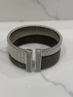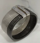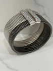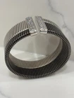 Experience the seamless blend of classic design and modern elegance with this Bronze Milor Italy Gooseneck Bracelet. Crafted in Italy, this bangle showcases a chunky, flexible silhouette that adorns your wrist with a touch of sophistication. The silver-tone finish complements any outfit, making it a versatile accessory for both casual and formal occasions. The bracelet's notable length of 8 inches ensures a comfortable fit, while the high-quality bronze base metal promises durability. Adorned with sparkling CZ accents, it captures the light and adds a subtle shimmer to your every movement. This piece is a testament to Milor's commitment to craftsmanship and style, sure to enhance your jewelry collection with its timeless appeal.