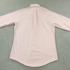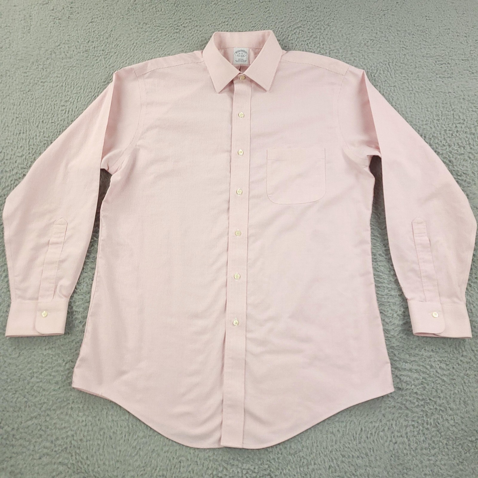 Brand: Brooks Brothers Style: Mens long-sleeve dress shirt with button front and point collar. Color: Light pink with subtle white pinstripe pattern. Size on tag: 16-33 (neck 16 inches, sleeve 33 inches); slim fit. Material: All Supima cotton with non-iron finish; made in Malaysia. Details: Single chest pocket, button cuffs, curved shirttail hem, back box pleat, classic business or office wear design. Washed and dried with Fragrance Free Detergent & Dryer Sheets. Measurements are included in the photos, compare measurements with your item to ensure proper fit. (Measurements are done with the item lying flat). I ship next business day and all items include tracking. Items are added daily to my store